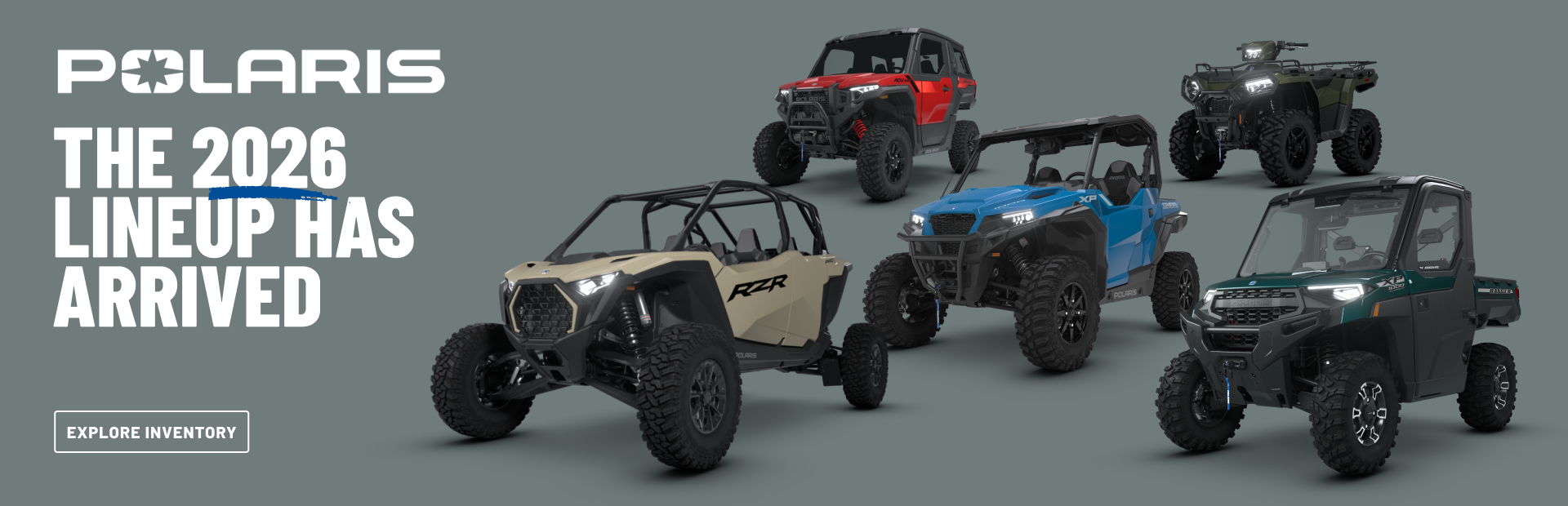 **Financing available on 2025-2026 new and unregistered Polaris® RZR®, RANGER®, Sportsman®, GENERAL® models purchased between 11/1/2025 - 12/31/2025. Rates as low as 0.00% APR for 60 months. Examples of monthly payments required over a 60‑month term at a 0.00% APR rate: $16.67 per $1,000 financed. An example of a monthly payment with $0 down, no rebate, an APR of 0.00% APR for 60 months at an MSRP of $13,999 is $233.32 /mo. Down payment may be required. Other financing offers may be available. See your local dealer for details. Minimum Amount Financed $2,500; Maximum Amount Financed $50,000. Other qualifications and restrictions may apply. Financing promotions void where prohibited. Tax, title, license, and registration are separate and may not be financed. Promotion may be modified or discontinued without notice at any time in Polaris’ sole discretion. Warning: Polaris off-road vehicles can be hazardous to operate and are not intended for on-road use. Driver must be at least 16 years old with a valid driver’s license to operate. All riders should always wear helmets, eye protection and protective clothing and footwear. Read, understand and follow your owner’s manual. Ride within the limits of your own abilities and never engage in stunt or exhibition driving. Never ride under the influence of drugs or alcohol. All riders should take a safety training course. Call 800-342-3764 for additional information. Check local laws before riding on trails.